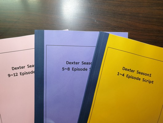 Dexter 덱스터 시즌1 미드영어대본이 다음과 같이 예쁘고 튼튼하게 제본되어 출고되었습니다.